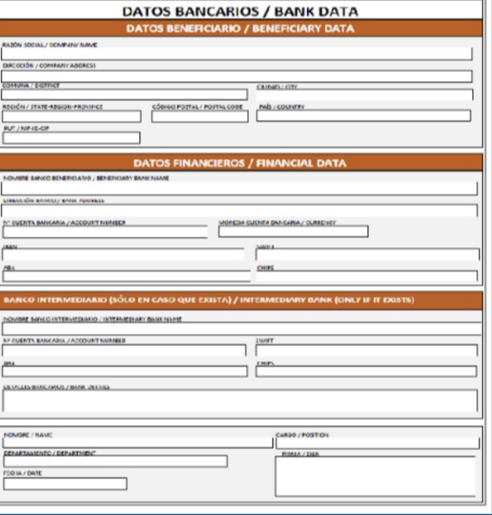 3- Es obligatorio la completitud de todos los campos solicitados excepto la información del Banco Intermediario (el cual sólo debe ser ingresado en caso de que exista).